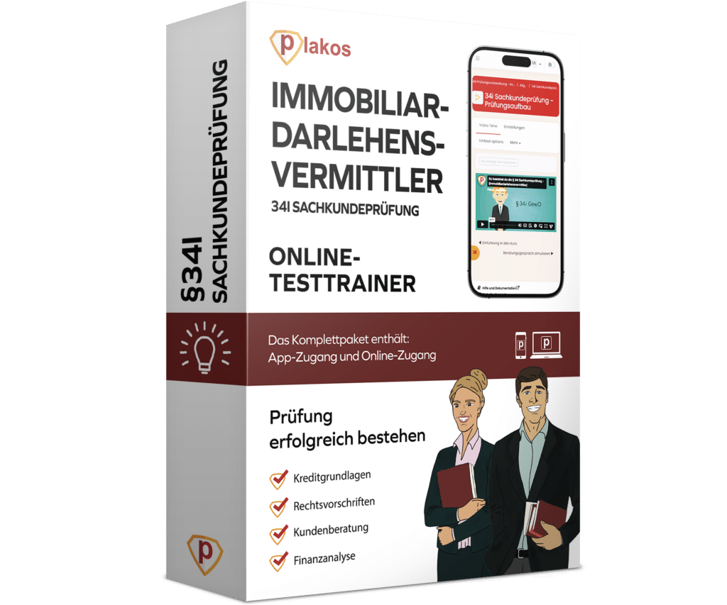 Beginne noch heute mit Deiner Vorbereitung für Deine 34i Prüfung für Immobiliardarlehensvermittler mit dem Plakos Online-Testtrainer!