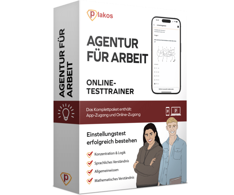 Um gute Ergebnisse zu erzielen, ist für den Agentur für Arbeit Eignungstest eine Vorbereitung oft der Schlüssel. Besonders hilfreich können dabei unsere Online Seminare und Übungen sein. Mit diesen lässt sich der Einstellungstest der Agentur der Arbeit bequem online üben, was die Chancen auf eine erfolgreiche Bewerbung deutlich steigert. Wir bieten übrigens auch Vorbereitungen auf den Psychologischen Eignungstest der Agentur für Arbeit an.