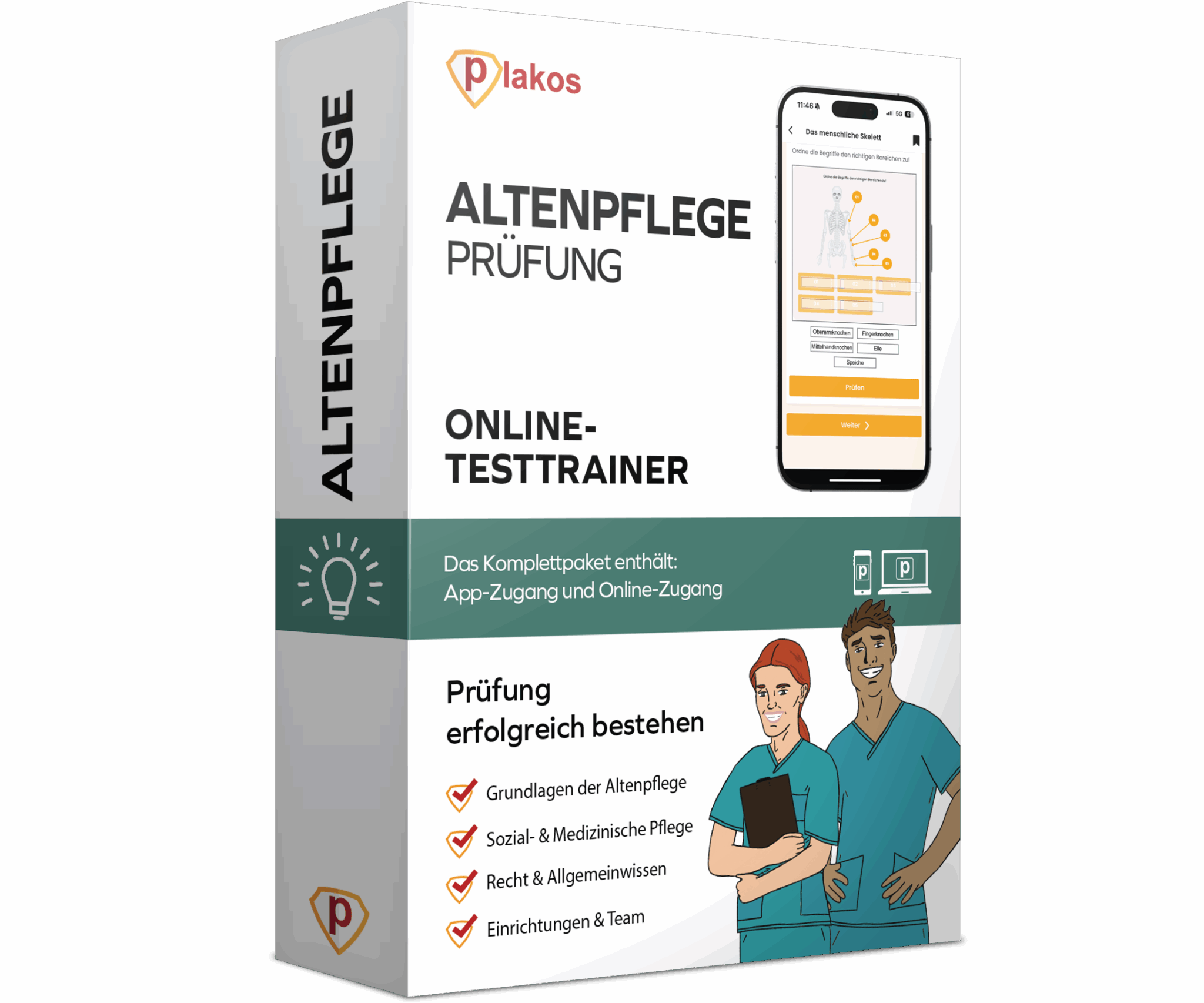 Die Abschlussprüfung in der Altenpflegehilfe umfasst viele Lernbereiche und verlangt solides Fachwissen sowie praktische Fähigkeiten. Mit einer guten Vorbereitung, einer klaren Struktur und passenden Übungsaufgaben kannst du deine Chancen deutlich erhöhen. Der Plakos Online Testtrainer hilft dir dabei, relevante Inhalte gezielt zu wiederholen und dich optimal auf den schriftlichen, mündlichen und praktischen Teil der Prüfung einzustellen.