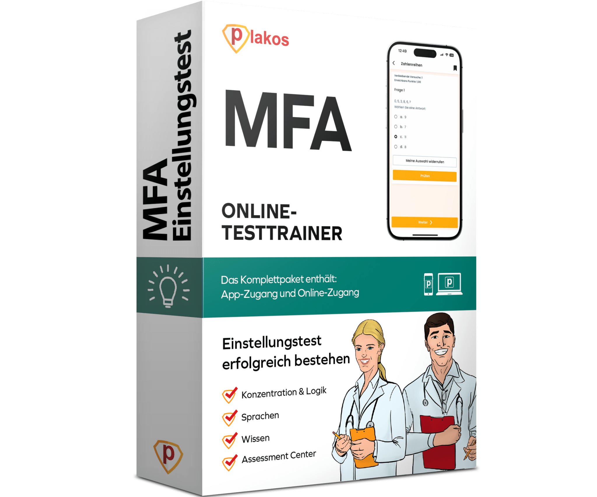 Für diese Ausbildung sind keine besonderen Schulabschlüsse vorgeschrieben. Es gibt allerdings bei der Bewerberauswahl bestimmte Kompetenzen, auf welche Ausbildungsbetriebe besonderen Wert legen. Diese werden im Einstellungstest MFA abgefragt. Wer sich auf den Test vorbereitet, ist also klar im Vorteil. Zur unkomplizierten Vorbereitung auf den Einstellungstest medizinische Fachangestellte eignetet sich zum Beispiel der Online-Testtrainer von Plakos.