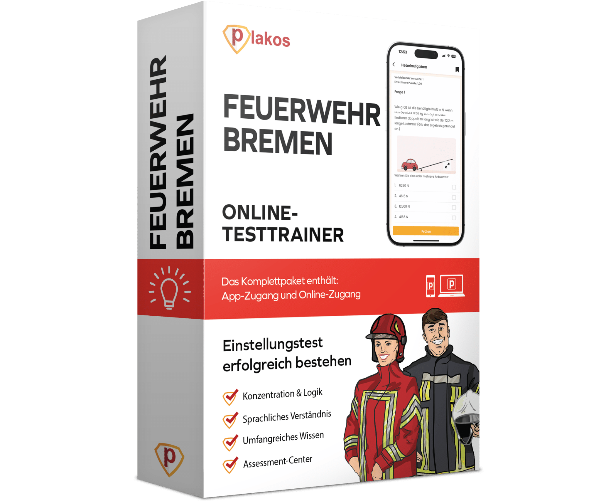 Du willst zur Feuerwehr in der Bremen und den Eignungstest erfolgreich bestehen? Dann ist gezielte Vorbereitung der Schlüssel! Unser Online-Testtrainer bietet dir realistische Übungsaufgaben, fundierte Erklärungen und praxisnahe Tipps rund um Bewerbung, Voraussetzungen und Testinhalte. Trainiere alle relevanten Bereiche und steigere deine Erfolgschancen im Auswahlverfahren der Feuerwehr.