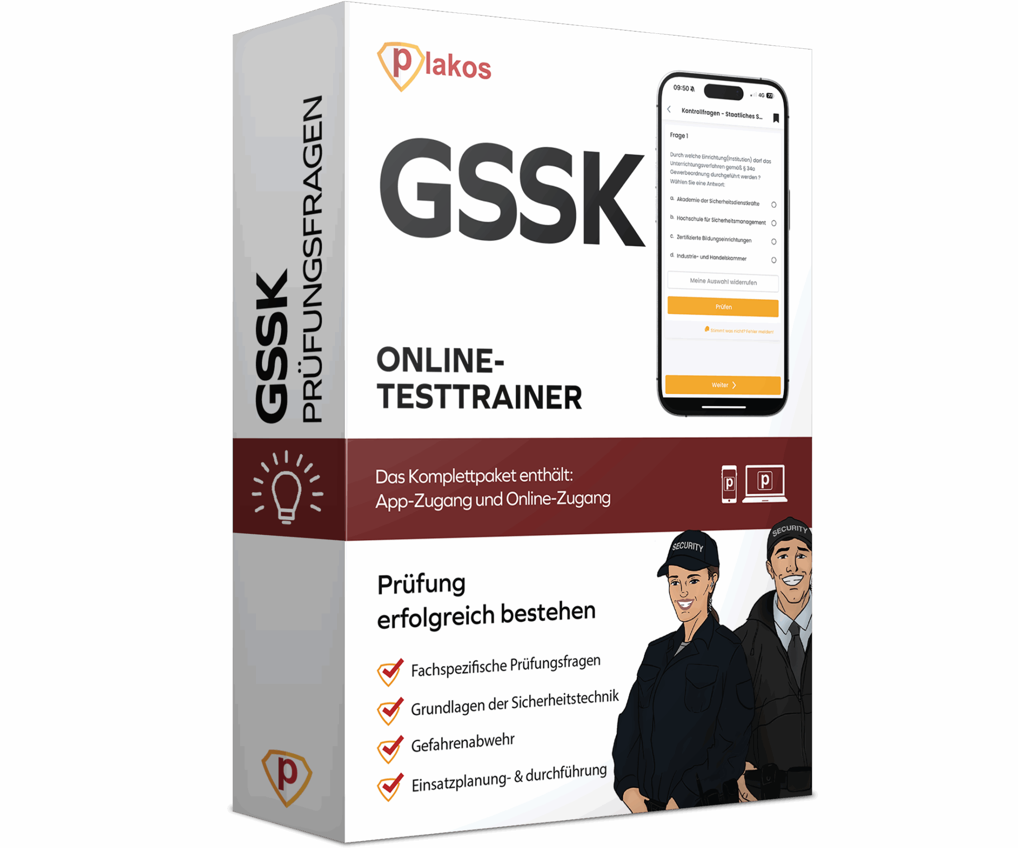 Stehst du vor der anspruchsvollen IHK-Prüfung zur Geprüften Schutz- und Sicherheitskraft (GSSK) und suchst nach einer effektiven Vorbereitung? Dieser Online Testtrainer ist dein umfassender Wegbegleiter, um dich gezielt und zeiteffizient auf die komplexen Prüfungsfelder aus Recht, Sicherheitstechnik, Gefahrenabwehr und Arbeits-/Gesundheitsschutz vorzubereiten. Nutze authentische Prüfungsfragen, interaktive Übungen und realitätsnahe Simulationen, um deine Nervosität zu besiegen, eventuelle Wissenslücken zu schließen und die GSSK-Prüfung sicher zu bestehen.