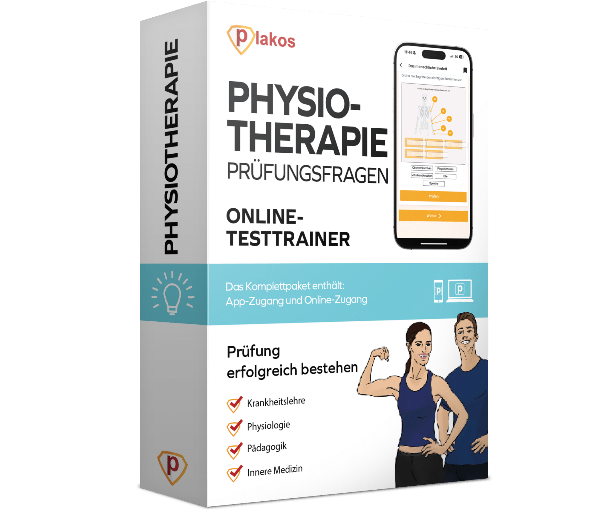 Du stehst kurz vor dem wichtigsten Schritt deiner Ausbildung: dem Staatsexamen zum/zur Physiotherapeuten/in? Die Zulassung zu diesem heilenden und zukunftssicheren Beruf verlangt dir fundiertes Wissen in Anatomie, Physiologie, Krankheitslehre und allen therapeutischen Techniken ab. Die Prüfung ist umfassend und die Angst vor den komplexen Fachfragen ist groß. Ohne eine gezielte, strukturierte Vorbereitung wird das Staatsexamen zur unnötigen Hürde. Gehe mit maximaler Sicherheit in die Prüfung! Mit dem Plakos Online-Testtrainer erhältst du die perfekte, strukturierte Vorbereitung, die exakt auf die Anforderungen deines Staatsexamens zugeschnitten ist. Du trainierst mit prüfungsnahen Physiotherapie Prüfungsfragen zu allen relevanten Modulen, von der Bewegungslehre bis zur Pathologie. Unser Plakos KI-Trainer unterstützt dich 24/7 bei komplexen Fachfragen. Sichere dir jetzt deinen Berufsabschluss und deine Zulassung!