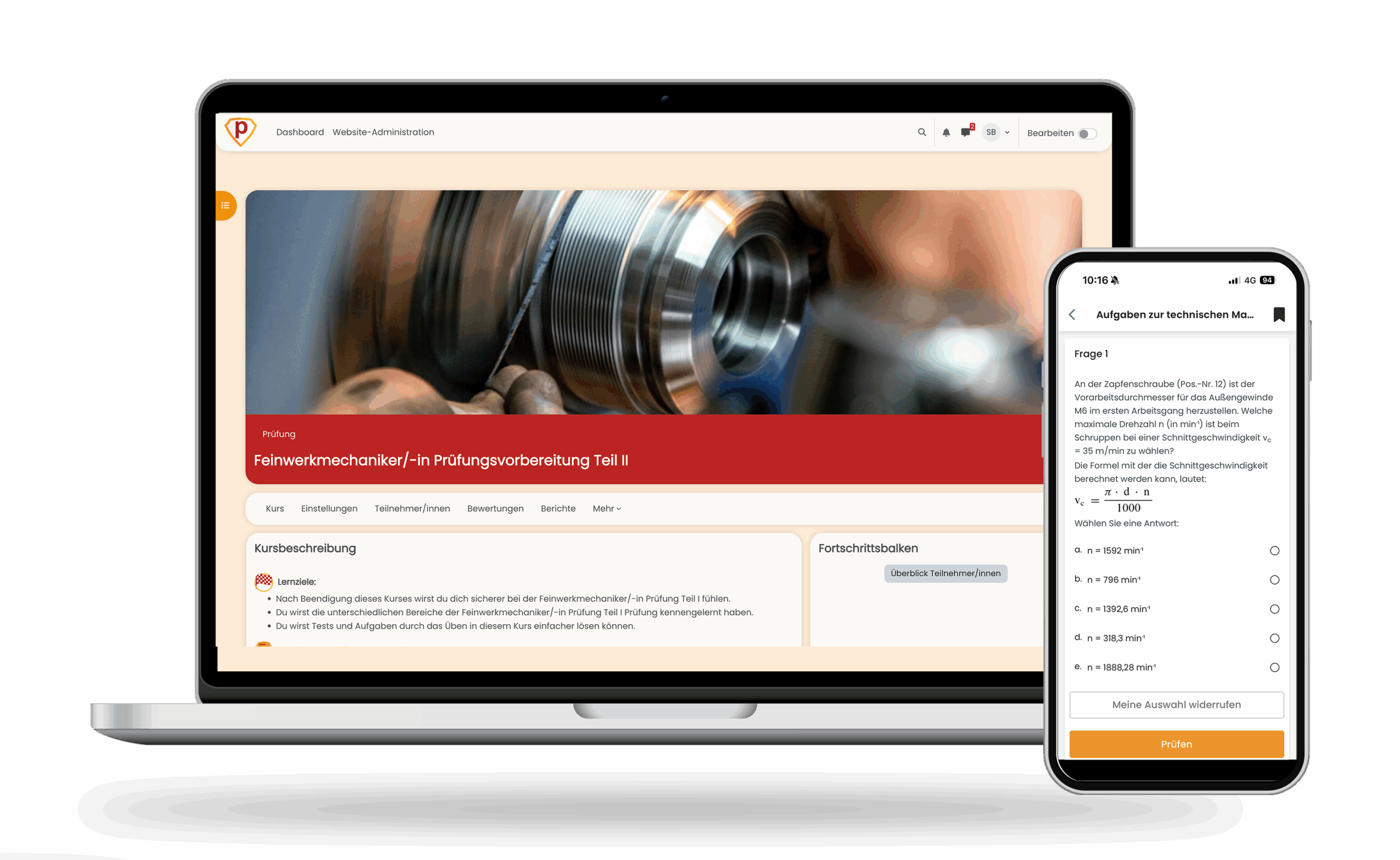 ✓ Trainiere unter realistischen Testbedingungen für die Feinwerkmechaniker Prüfung – Mit App & Online-Kurs.